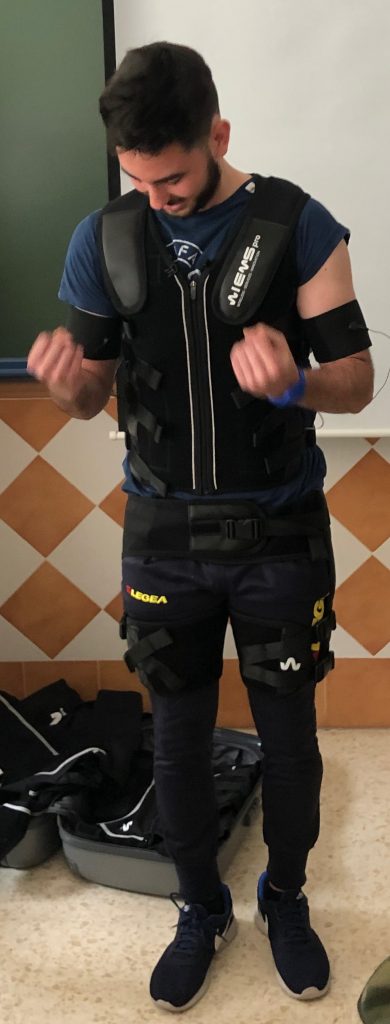 Nos hablaron acerca de todo sobre lo relacionado con los beneficios que este nos aportaba en el ámbito de la actividad física para el bienestar tanto saludable como físico. Además, que para su uso tiene que tener unas nociones mínimas acerca de entrenamiento y lo que realmente tu cuerpo te exige, ya que en ocasiones, con una electro-estimulación mal ejecutada puede causar dolor y lesiones. Es por eso que, este aparato controlado por una tablet, no es ningún juguete y debe estar a cargo de una persona que realmente conozca su uso, aplicando la carga necesaria a cada uno de los músculos que lo requiere en el movimiento realizado. Además, tuvimos la suerte de probar estos chalecos electro-estimuladores, teniendo una grata experiencia.