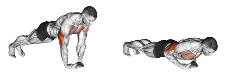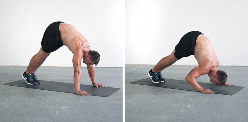 Esta variante de las push-ups, compromete en mayor medida la articulación del hombro, lo cual nos interesa en gran medida para acercarnos al movimiento completo de las handstand push-ups. Para realizar este ejercicio debemos mantener la cadera flexionada, las rodillas extendidas y los pies apoyados sobre la punta de los dedos. Los codos permanecen en un ángulo de unos 45 grados respecto a nuestro torso.